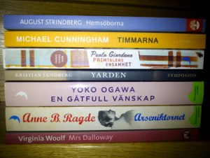 1. Vad skönt ändå att inte ha en överfull bokhylla. Det är härligt att kunna välja och vraka i typ fyra år framöver men kan också kännas stressande ibland. 🙂 Roligt att du är med i Strindbergutmaningen förresten.