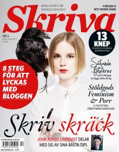 Jag trodde att jag sagt upp min prenumeration på Tidningen Skriva och blev därför glad men förvånad när det låg ett nummer bland posten igår. Anledningen till att jag (trodde att jag) sa upp den är att jag faktiskt inte skriver. Jag har inte heller någon bok inom mig som väntar på att komma ut, precis som jag aldrig hade en låt i mig under min period som basist. Däremot är jag intresserad av skrivandet som fenomen, jag tycker om att läsa om det och jag hoppas på att faktiskt skriva något någon gång. Lite roligt är därför att det i detta nummer står:
