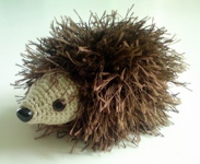Jag hittade mönstret här: http://yellowpinkandsparkly.blogspot.se/2009/10/heidi-hedgehog.html och så hade jag köpt lite ögon och nosar som råkade passa. Det var ganska klurigt att hitta maskorna i det bruna garnet (jag använde Järbo Garn Tindra) men jag blev riktigt nöjd med resultatet!