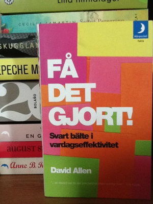 En riktigt stor ovana som jag har, vid sidan om min obotliga tidsoptimism, är den så kallade det perfekta storhetsvansinnetsprojektet som ska bli så vansinnigt perfekt att det aldrig blir av. Som till exempel den här lilla till synes enkla utmaningen Femton böcker. Jag valde min första bok medan jag satt vid min stationära dator vilken är placerad på mitt skrivbord i vilket jag har mina scrapbooking-saker. Jag fick en briljant snilleblixt att jag skulle fota dessa femton böcker mot mina vackra papper och sedan dessutom fixa dem lite i Picasa och sätta en ram runt. Två böcker hann jag göra och under resten av sommaren har jag knappt rört min stationära dator, eftersom den är förknippad med mina studier ifrån vilka jag faktiskt har sommarlov. Istället har mitt sommarbloggande bestått av ett evigt pusslande på paddan (vilken inte är särskilt samarbetsvillig med bloggare) och ett och annat inlägg på den lilla netbooken. Allt detta har skett i soffans bekvämlighet långväga ifrån det studierelaterade skrivbordet.