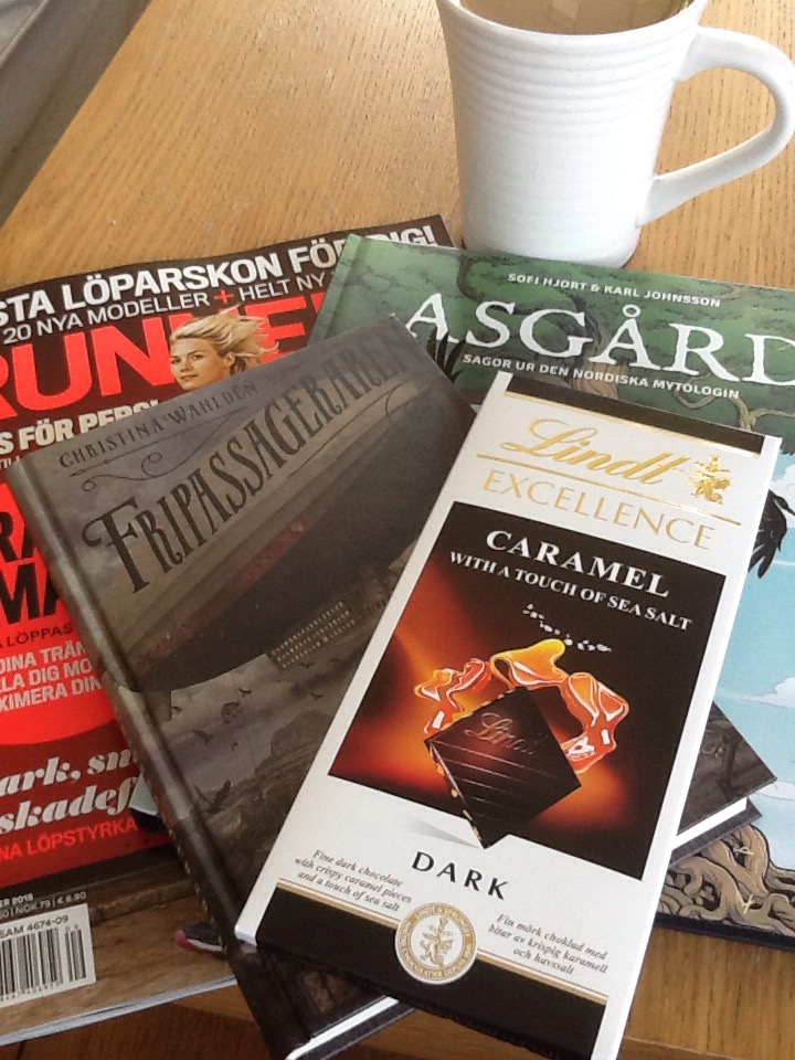 Nu skiner solen efter förmiddagsregnet och jag hade fått två recex och en gratis tidning (som vill ha mig tillbaka som prenumerant men jag är värdelös på att hinna läsa tidningar!) i postfacket. På konsum (vadå coop?) reade de ut en fantastiskt god choklad och nu är kaffet klart.