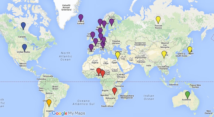 Äntligen har jag fått tummen ur och markerat mina lästa länder på google maps och det var exakt lika enkelt som Monika sa! Med lästa länder så syftar jag på det medlemskap som författaren har/hade eller där hen är uppväxt. En del har ju dubbla medlemskap och då väljer jag helt enkelt det som blir coolast för statistiken. 🙂 Vadå? Det är min blogg och mina regler! Jag hade en omstart i mitt läsande liv i samband med bloggen och markeringarna gäller from dess, dvs 2011.