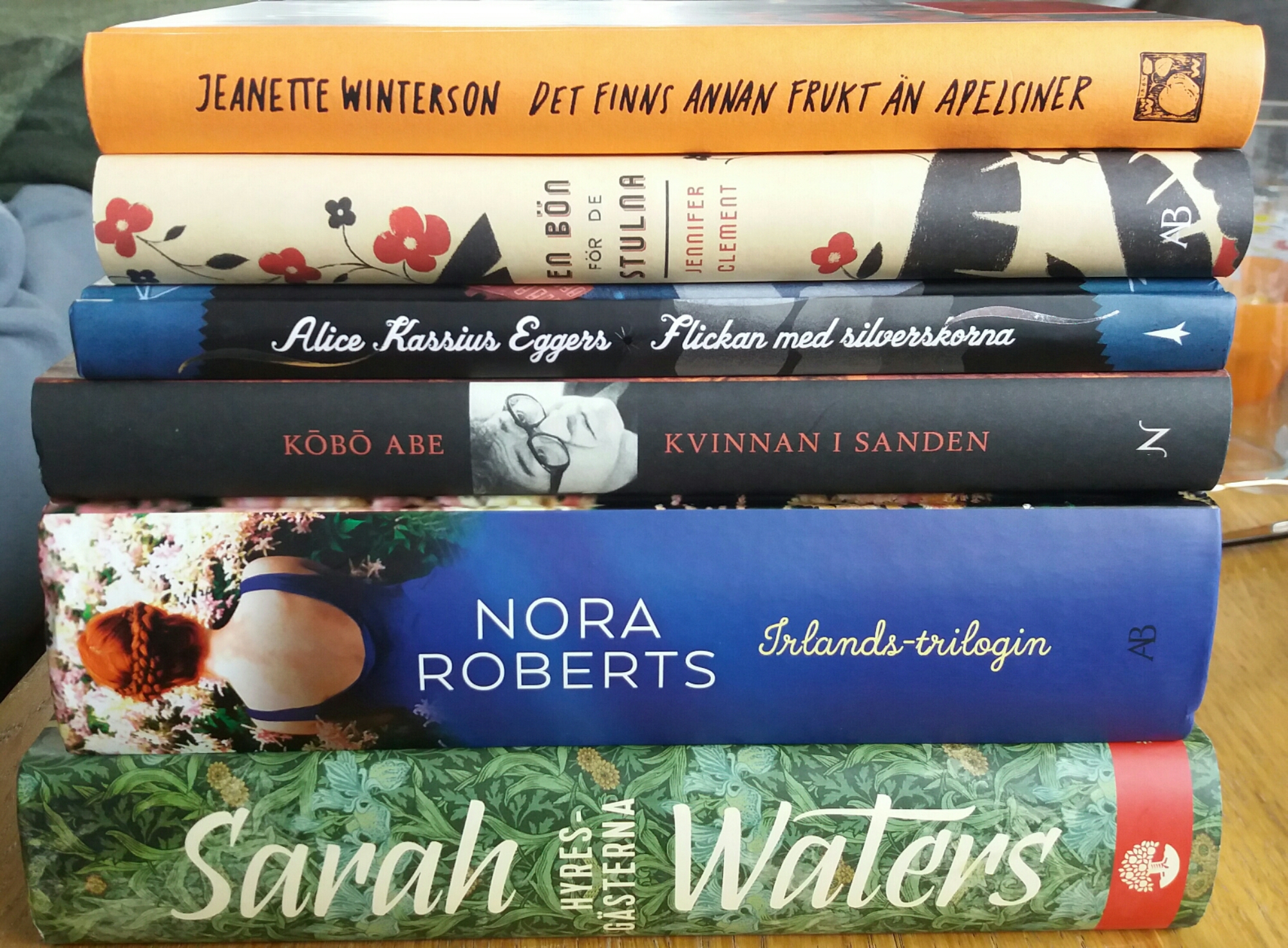 Efter tre dagar tillbringade mestadels i soffan framför HBO Nordic (sportlov = att vara sjuk när du är lärare) pallrade jag mig idag in till stan för att kolla in rean. Jag köper ju inte så många böcker längre men i år ville jag ändå ha några. De flesta är författare jag varit nyfiken på ett tag så som Waters, Roberts och Winterson. En bön för de stulna intresserade mig när den släpptes och Flickan med silverskorna ska bli present åt veckans födelsedagspojke. Kvinnan i sandens omslag fångade mig när jag gick förbi och när jag läst på baksidan var jag fast. En av mina största läsupplevelser genom åren är Fågeln som vrider upp världen och särskilt fäste jag mig vid det som handlade om Toru när han satt i brunnen. Kvinnan i sanden handlar om två människor som sitter fast i en sandgrop. Mycket bättre än så blir det väl inte?