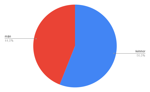 Kvinnor/män/icke-binära: 62 / 47 / 0