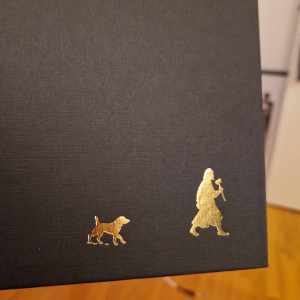 Formgivningen av den här boken är så sanslöst snygg; omslaget som liksom skiftar i brunt-guld, runorna i ramen och så när du tar av omslaget så hittar du Åsmund och hans hund i skimrande guld! Eric Thunfors borde definitivt vinna något lämpligt pris för det här! (Finns det ens några? Jag har noll koll)