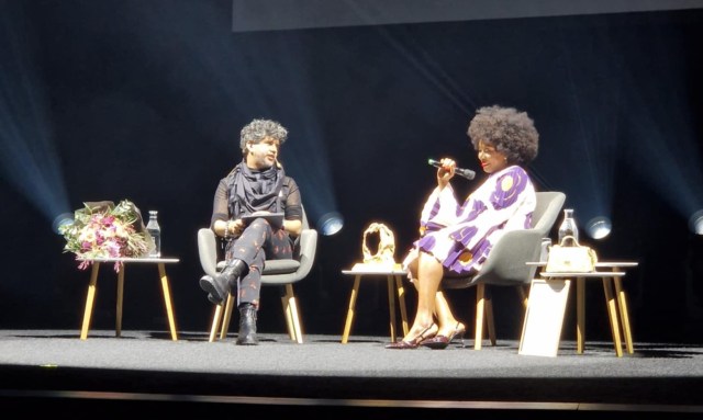 35 min efter utsatt tid startade prisutdelningen och samtalet med Chimamanda. Hennes bagage var tydligen försvunnet så kanske var det för att hon skulle hinna få en klänning. Det var ett fint samtal och Ismaïl var väldigt bra som intervjuare. De pratade om Drömräkning och att hennes skrivande förändrats när hennes föräldrar dog eftersom att hon själv förändrades av den erfarenheten. Hon sa att hon var less på att alltid behöva prata om postkolonialism och menade att hon hellre vill prata om kärlek, ilska, avundsjuka och hur folk har påverkats personligen av hennes böcker. Hon har hört folk diskutera vem de vill vara i Unga kvinnor och önskar att vi kunde göra detsamma med hennes böcker istället för att alltid tolka dem. (jag hör vad hon säger men hon skriver faktiskt om en hel del tunga viktiga ämnen)