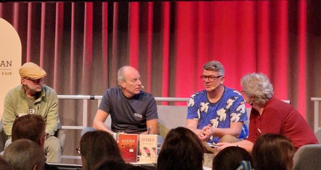 Det här var ett riktigt bra samtal mellan tre författare med god kemi och en skicklig samtalsledare! De pratade om att det tydligen finns olika typer av skräck: horror – man blir förskräckt (Mats, John) och terror – man väntar på något läskigt som liksom smyger sig på (Johan). Lotta Olsson menade att Musan är en deckare men jag vet inte om jag håller med då jag inte tycker att det är ett fall som ska lösas. Det är snarare något läskigt och obehagligt som lurar och utvecklar sig. Lotta tyckte att i deckare försöker man förstå vad som hände medan i skräck försöker man förstå vad som händer.