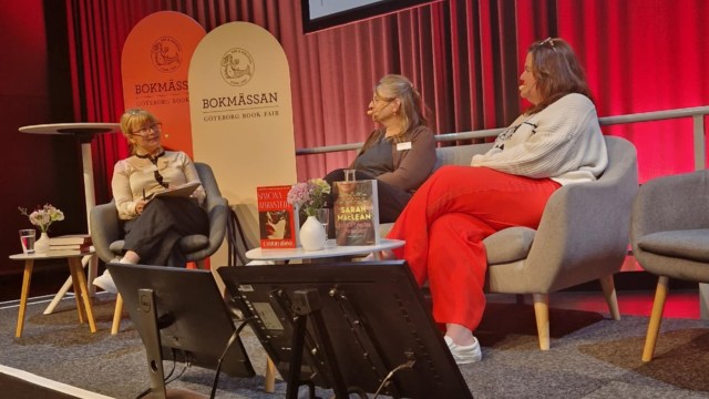 Två väldigt erfarna romanceförfattare som pratade om vad romance är (two idiots falling in love), varför de skriver i genren och att de bägge två också stoppar in allvarliga ämnen i sina böcker. MacLean jämförde det med att man lägger ett piller i lite ost eller jordnötssmör om man vill ge sitt husdjur medicin. Man lindar in det jobbiga i en massa fluff helt enkelt. Bägge två har skrivit i ca 15 år och tycker att de utvecklats mot en mer inkluderande romance än de hade inledningsvis. Simona har jag följt slaviskt sen debuten men hon är också den hittills enda romanceförfattaren jag läst. Kanske borde jag pröva MacLean också?